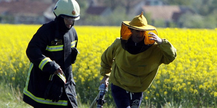 Η 74χρονη δέχθηκε επίθεση από το σμήνος μελισσών, ενώ περνούσε δίπλα από καρότσα φορτηγού με περίπου 90 κυψέλες, σε επαρχιακό δρόμο, κοντά στην πόλη Κοπρίβνιτσα. Στην περιοχή έσπευσαν πυροσβέστες για να βοηθήσουν την ηλικιωμένη και απομάκρυναν το σμήνος μελισσών, ρίχνοντας νερό.