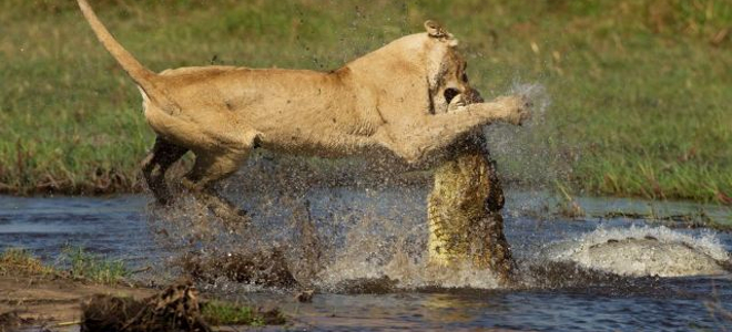 Τη μάχη μιας λέαινας με έναν κροκόδειλο, προκειμένου να προστατέψει τα μικρά της, απαθανάτισε η φωτογράφος άγριας ζωής Πία Ντιέριξ, με τις εικόνες να κόβουν την ανάσα.