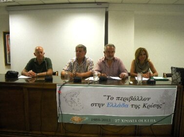 Η οικονομική κρίση και ο εγκλωβισμός της χώρας μας στις συμπληγάδες του δυσβάστακτου χρέους απειλούν να οδηγήσουν σε περιορισμό της προστασίας συνταγματικά διασφαλισμένων δημόσιων αγαθών, όπως οι προστατευόμενες περιοχές, τα πολεοδομικά σχέδια και οι ανοικτοί δημόσιοι χώροι. Χρειάζεται εγρήγορση και αγωνιστικό φρόνημα εκ μέρους των πολιτών καθώς και της διοικητικής δικαιοσύνης για να αποφευχθεί υποβάθμιση του περιβάλλοντος, στο όνομα της όπως-όπως προσέλκυσης επενδύσεων.Αυτό ήταν το κεντρικό συμπέρασμα από τη σημαντική ημερίδα που διοργάνωσε η Οικολογική Κίνηση Πάτρας με θέμα: «Το Περιβάλλον στην Ελλάδα της Κρίσης», την Τετάρτη 29 Μαΐου στην αίθουσα διαλέξεων του Δικηγορικού Συλλόγου Πατρών, με την ευκαιρία της συμπλήρωσης 27 χρόνων από την ίδρυσή της.