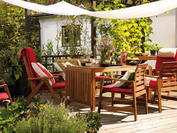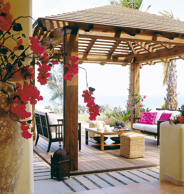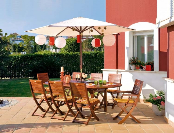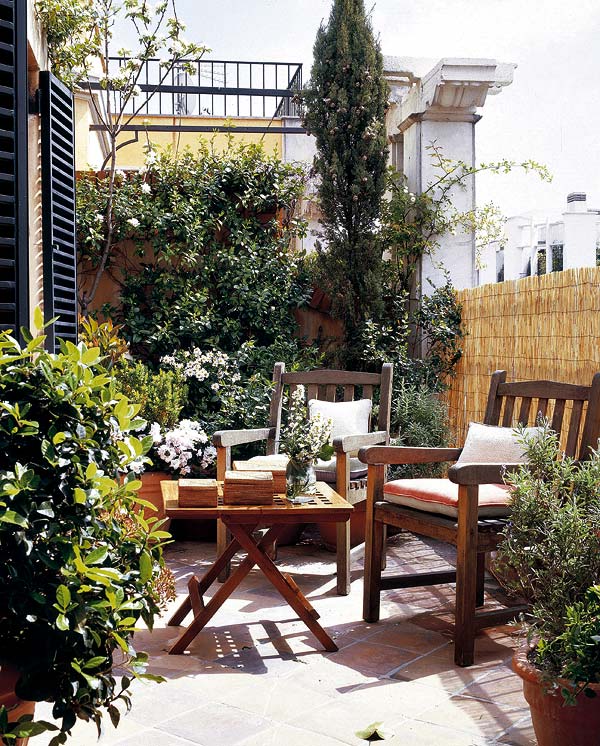 Όμορφα έπιπλα από ξύλο σίγουρα περιλαμβάνονται σε αυτόν τον υπέροχο κόσμο των ιδεών αίθριου. Ξύλινα τραπέζια και καρέκλες, προσθέτουν γοητεία και στυλ σε κάθε εξωτερικό χώρο.