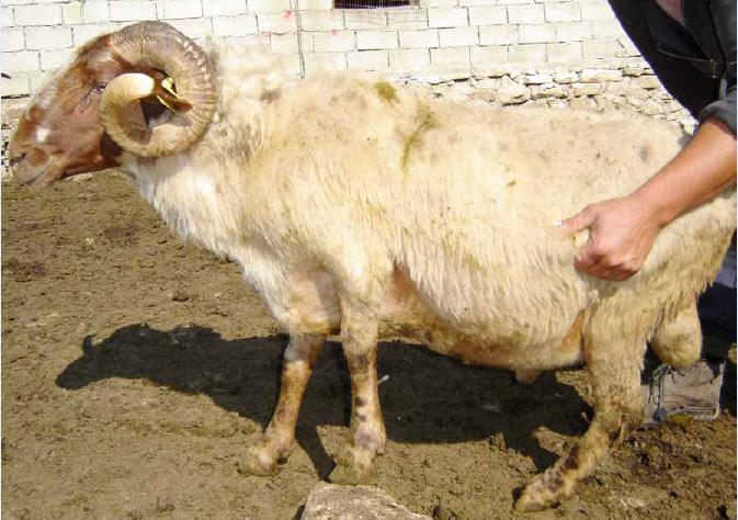 Xρωματισμός λευκός με κοκκινόφαιες κηλίδες στις παρειές του προσώπου, γύρω από το στόμα, τα αυτιά, την κάτω κοιλιακή χώρα και τα άκρα. Αναμικτόμαλλο. Κεφαλή κωνική με ελαφρώς κυρτό επιρρίνιο. Αυτιά οριζόντια, μετρίου μεγέθους. Άκρα πολύ κοντά, ιδιαιτέρως ισχυρά. Κριοί με ισχυρά κέρατα περιελισσόμενα γύρω από τα αυτιά. Θηλυκά ακέρατα. Ιδιαίτερα ευρύ στήθος με έντονη μυϊκή ανάπτυξη.