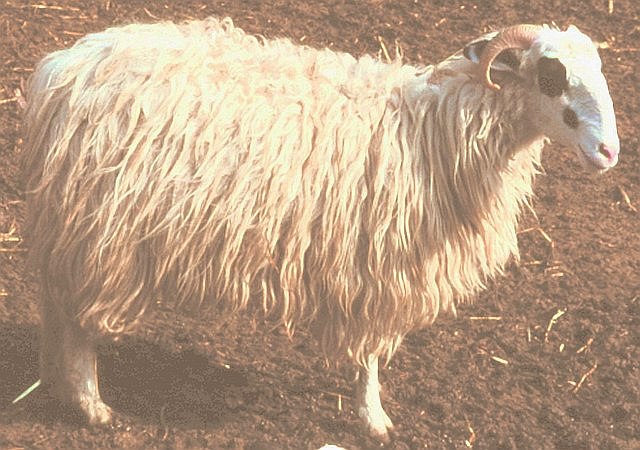 Xρωματισμός τριχώματος λευκός με μαύρους δακτυλίους γύρω από τους οφθαλμούς και μαύρες κηλίδες στα άκρα. Κεφαλή επιμήκης, επιρρίνιο κυρτό. Αυτιά μετρίου μεγέθους, οριζόντια. Kριοί με ισχυρά κέρατα, ελισσόμενα προς τα πλάγια. Προβατίνες ακέρατες.