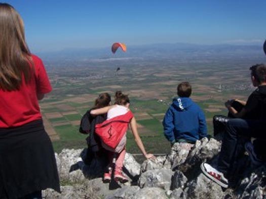 Μαζί μας ο στρατιωτικός κ. Νίκος Νέτσος που όχι μόνο εξήγησε στους μαθητές την τεχνική του αιωροπτερισμού, αλλά μόλις βρήκε ούριο άνεμο απογειώθηκε μπροστά στα έκπληκτα μάτια μας, έκανε τις πτήσεις του κυριολεκτικά πάνω από τα κεφάλια μας και προσγειώθηκε στον κάμπο.