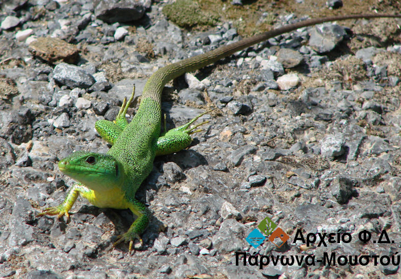 Οι σαύρες, αν και δεν αποτελούν τα αγαπημένα ζώα του ευρέως κοινού, γενικά δεν φαίνεται να ενοχλούν ιδιαίτερα τους ανθρώπους, δεδομένου ότι περιορίζουν τη «δράση» τους εκτός και μακριά από τις κατοικίες τους. Παρόλα αυτά, ένα είδος σαύρας σχεδόν πάντα προκαλεί τον πανικό με την εμφάνισή του, αν και αναγνωρίζεται άμεσα ως «σαύρα» και δεν μπερδεύεται με κάποιο είδος φιδιού. Το ζώο αυτό είναι η μεγαλύτερη τυπική σαύρα της Ελλάδας -εκτός των άποδων σαυρών- της οποίας το μεγάλο μέγεθος χαρακτηρίζει ορισμένα από τα κοινά ονόματά της: τρανόσαυρα, θεριοσάπιτα, πράσινη τρανόσαυρα, μεγάλη πρασινογουστέρα, θεριοσαπίτα, ενώ στο έντονο πράσινο χρώμα της οφείλονται άλλα όπως: πρασινόσαυρα, πρασινη σαυρα, πρασινογκούστερας. Το συγκεκριμένο ζώο είναι ευρέως γνωστό σε όλη την Ελλάδα οπότε και έχει και πολλά άλλα τοπικά κοινά ονόματα, όπως: φαρμάκα, κολοσαύραδος, σκουνταλάδα, κροκοδειλάκι, γουστέρα, κολόστραβη, σαυράδα, κολοσταυρίδα, κολόσαυρος, σαλαβρίχι, σαβραχίδα, κολισαύρα, ακολισαύρα, τσαπέκος, κοροσάβλα, βόστερας, κορκούσαυλος, τα περισσότερα από κάθε άλλο είδος ζώου, ίσως εννοώντας ορισμένες φορές και το πολύ συγγενικό είδος Lacerta viridis.